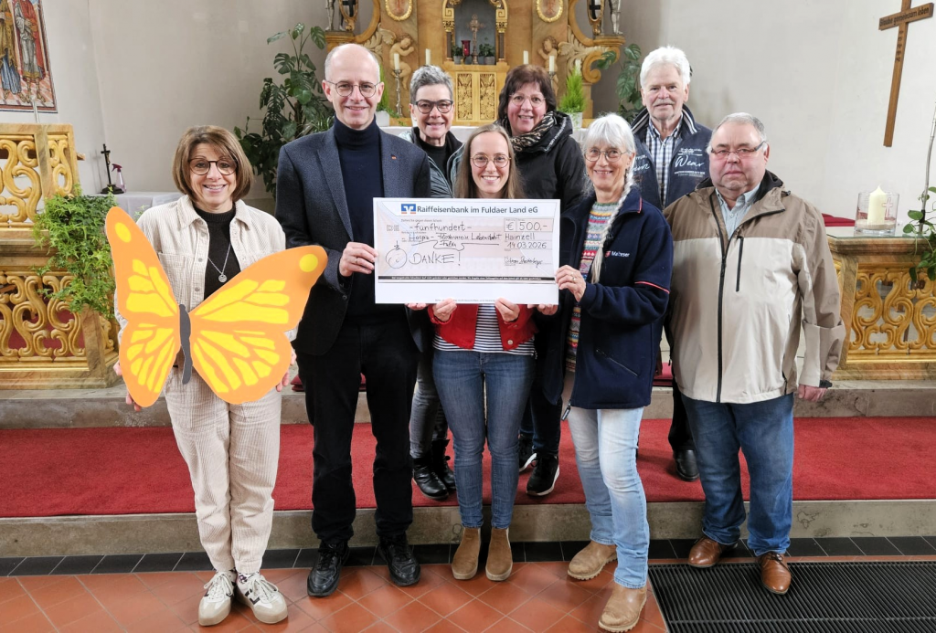 „Wir sind dankbar für diese gute Tat, dem Kirchenteam Hainzell sowie Viktoria und Lukas Streitenberger“, so Michael Brand, Vorsitzender des Hospizfördervereins Fulda, bei der Spendenübergabe in der Hainzeller Kirche St. Simplicius, Faustinus und Beatrix. „Jede Unterstützung hilft ganz konkret in der Region– der ambulanten und stationären Hospizbegleitung, dem Kinder-Hospizdienst und der Trauerbegleitung.“